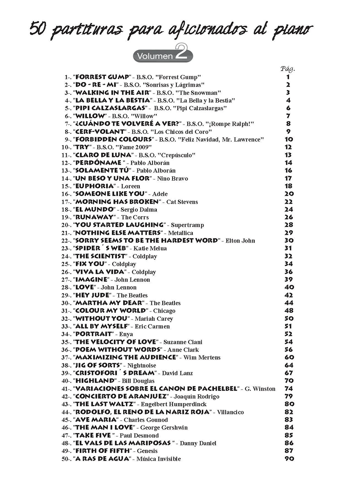 Volumen 2 - Colección 50 partituras para aficionados al piano