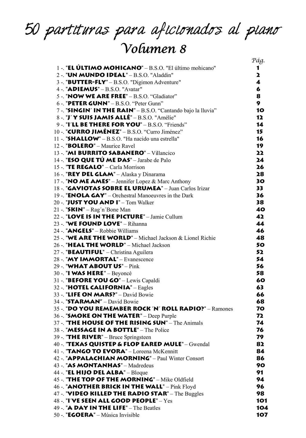 Volumen 8 - Colección 50 partituras para aficionados al piano